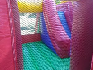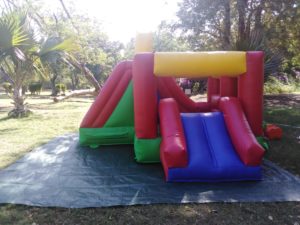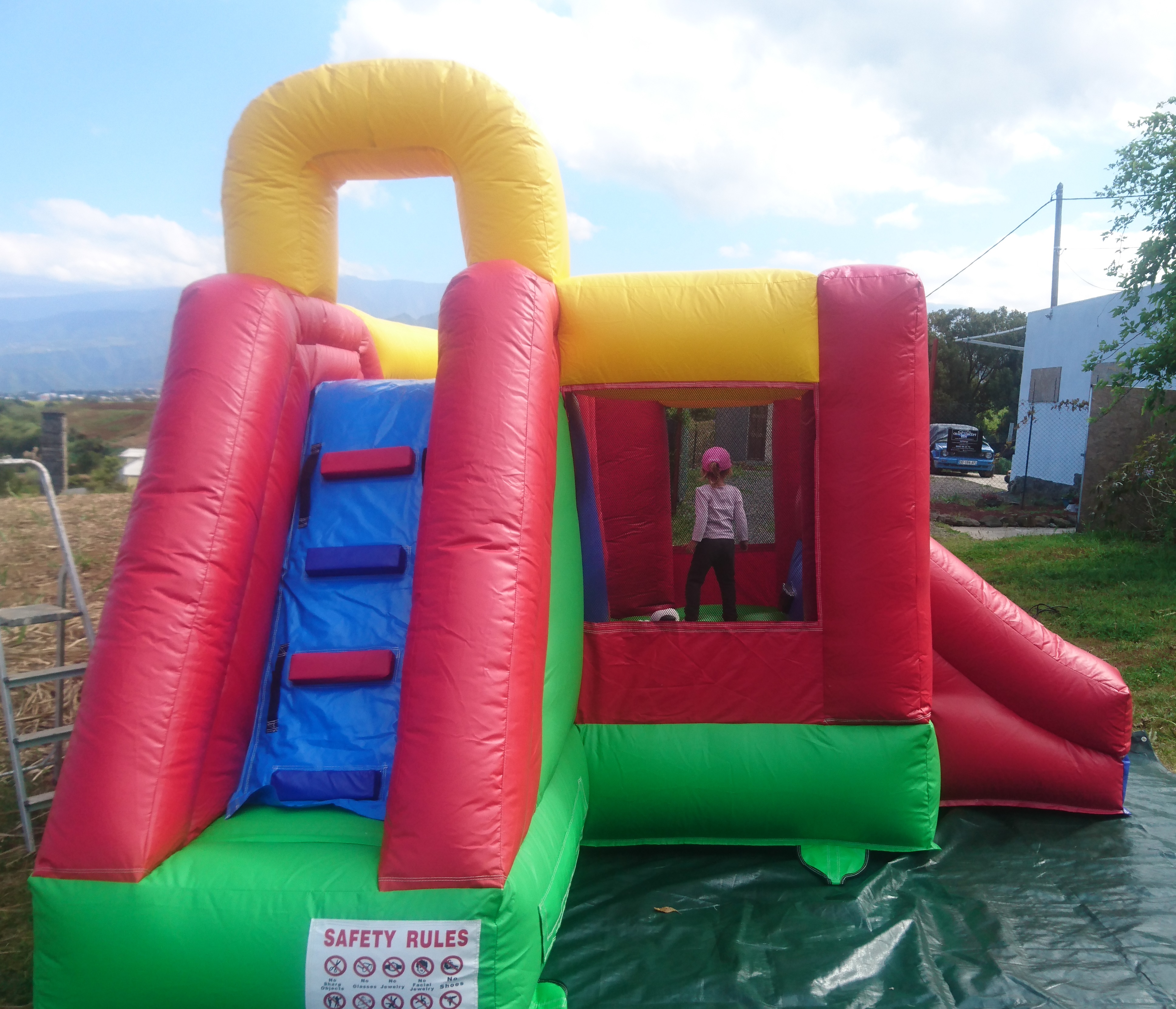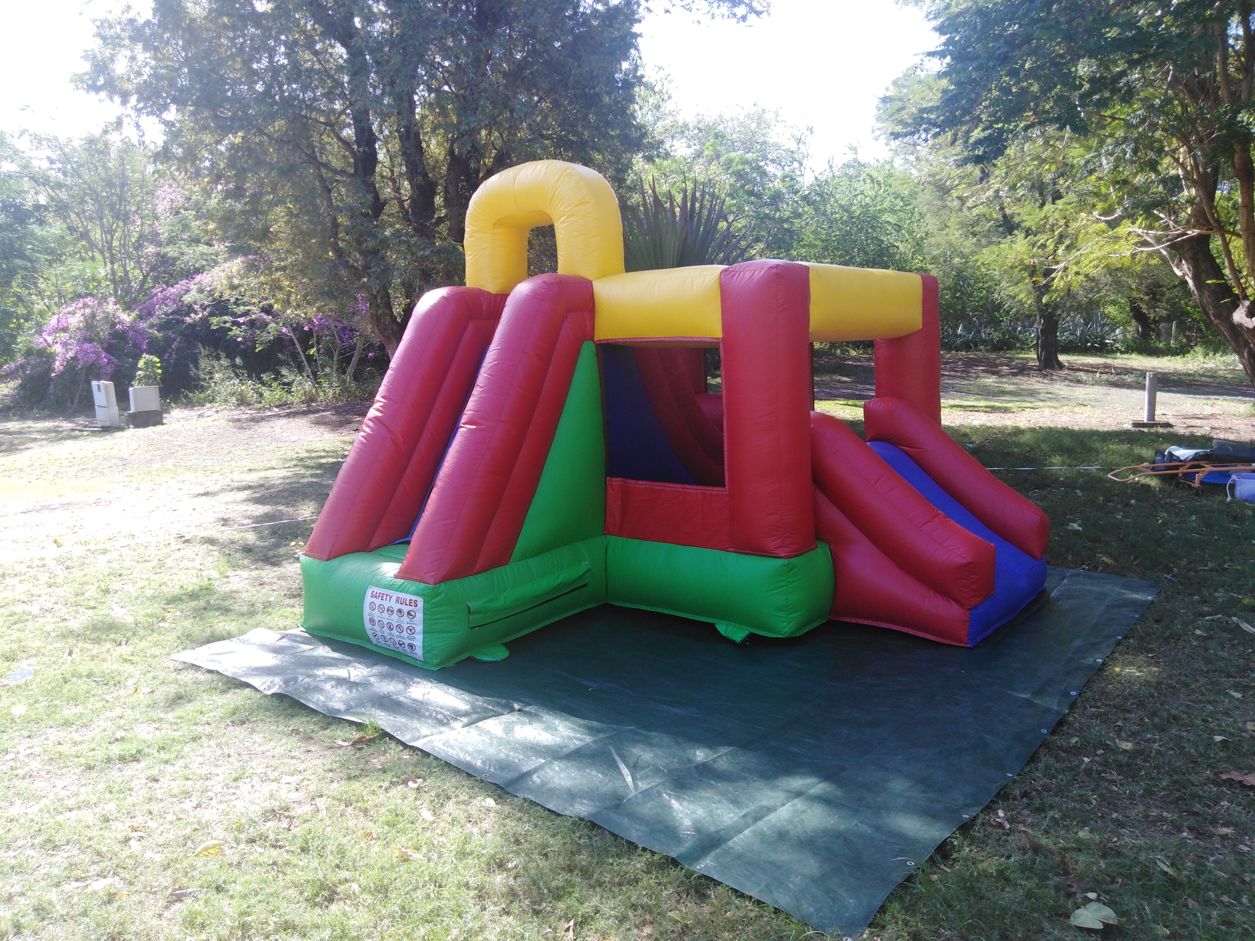 Composition: 1 trampoline, 1 grand toboggan (2.3m de haut) et un petit toboggan.